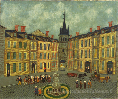 Nous vous proposons une reproduction artisanale sur toile du célèbre tableau 'Les noces' de Louis Vivin, provenant du Musée de la Reproduction.