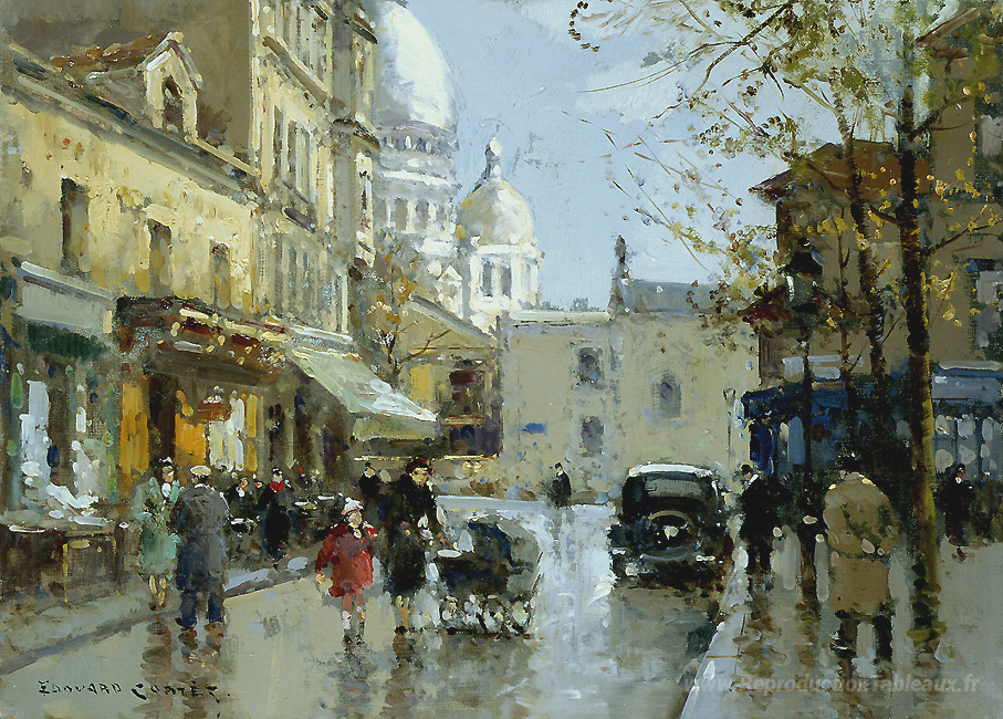 Nous vous proposons une reproduction artisanale sur toile du célèbre tableau 'Lieu d'un munifère Montmartre' de Edouard Cortes, provenant du Musée de la Reproduction.