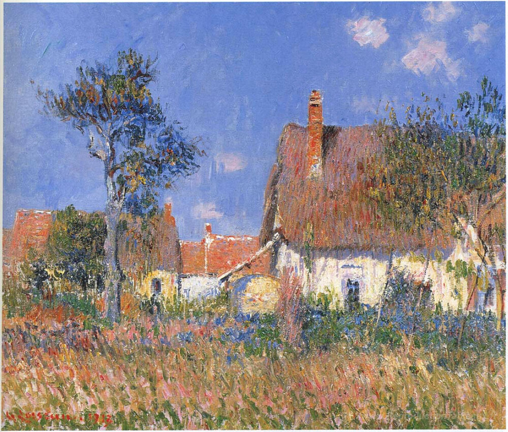 Nous vous proposons une reproduction artisanale sur toile du célèbre tableau 'Maisons en Normandie' de Gustave Loiseau, provenant du Musée de la Reproduction.