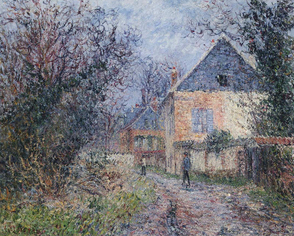 Nous vous proposons une reproduction artisanale sur toile du célèbre tableau 'Maisons près de l'eure' de Gustave Loiseau, provenant du Musée de la Reproduction.