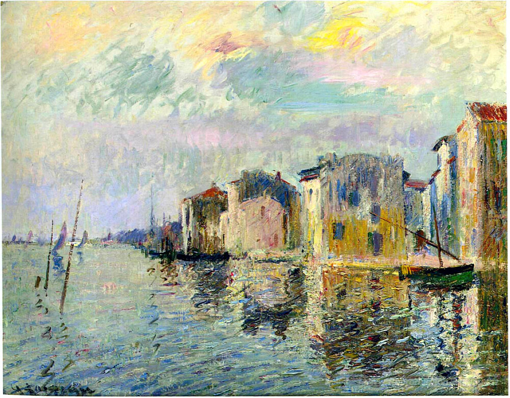 Nous vous proposons une reproduction artisanale sur toile du célèbre tableau 'Martigues' de Gustave Loiseau, provenant du Musée de la Reproduction.