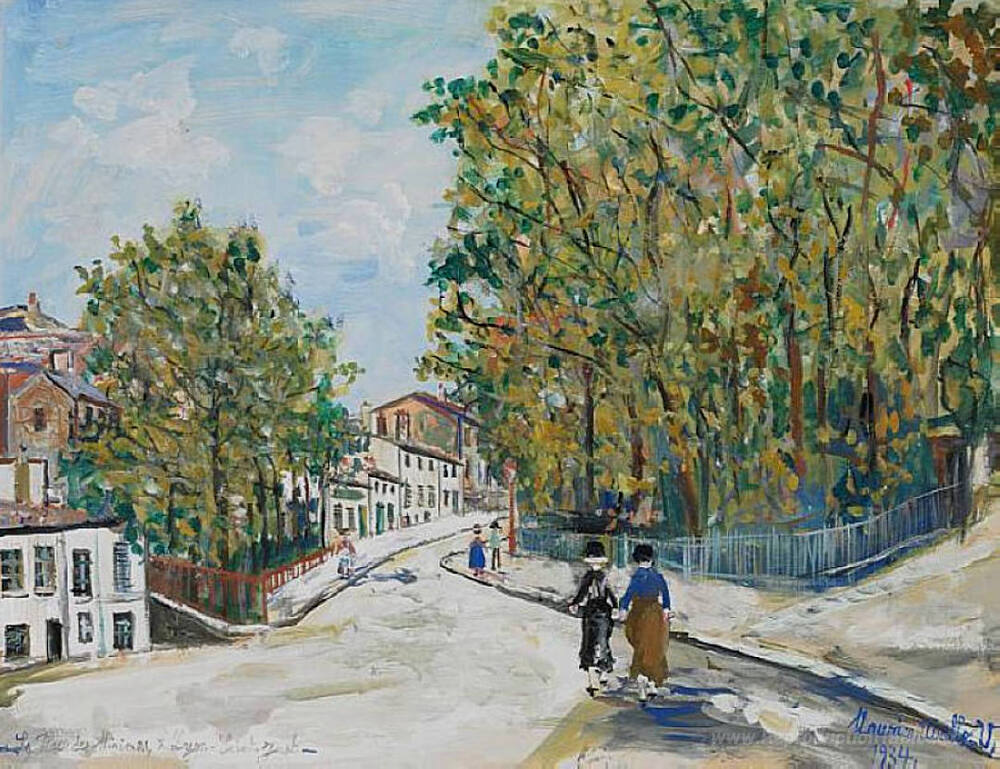 Nous vous proposons une reproduction artisanale sur toile du célèbre tableau 'MINIMES SQUIS' de Maurice Utrillo, provenant du Musée de la Reproduction.