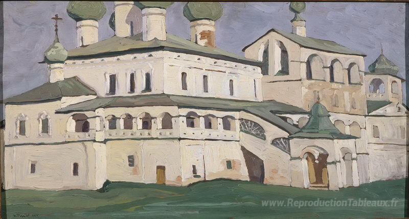 Nous vous proposons une reproduction artisanale sur toile du célèbre tableau 'Monastère de résurrection à Uglich' de Nicholas Roerich, provenant du Musée de la Reproduction.