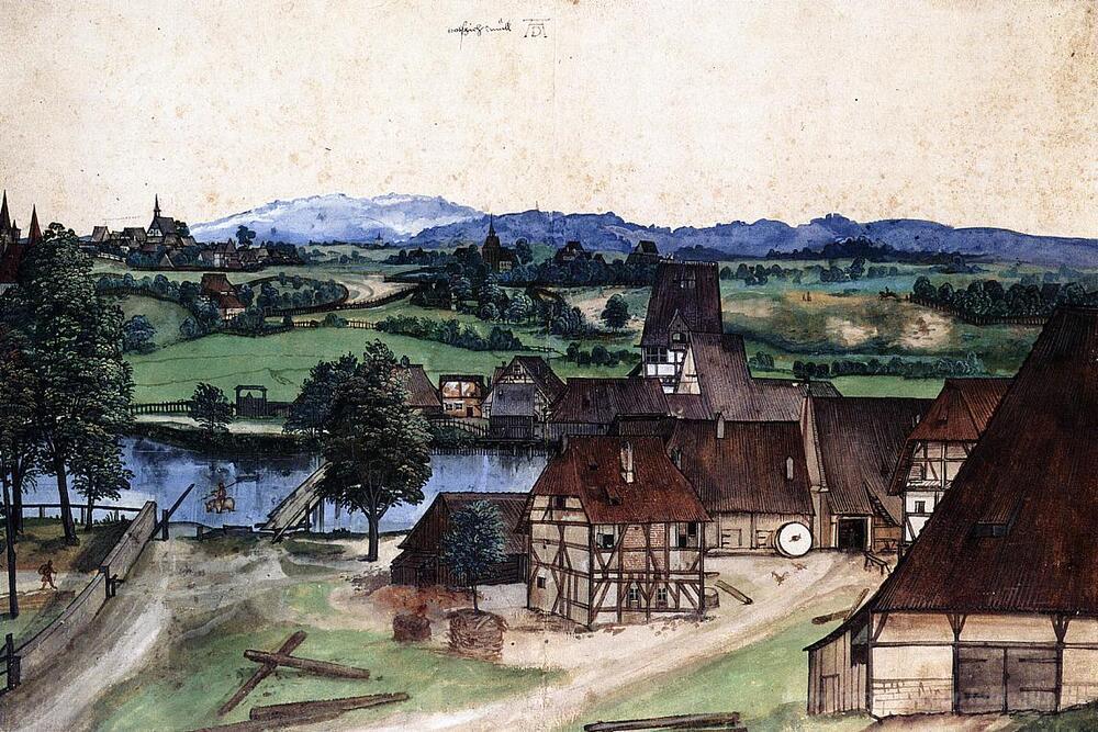 Nous vous proposons une reproduction artisanale sur toile du célèbre tableau 'Moulin à tirage' de Albrecht Durer, provenant du Musée de la Reproduction.
