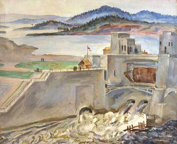 Nous vous proposons une reproduction artisanale sur toile du célèbre tableau 'Murmansk. Tulomstoy. Déversoir.' de Pyotr Konchalovsky, provenant du Musée de la Reproduction.