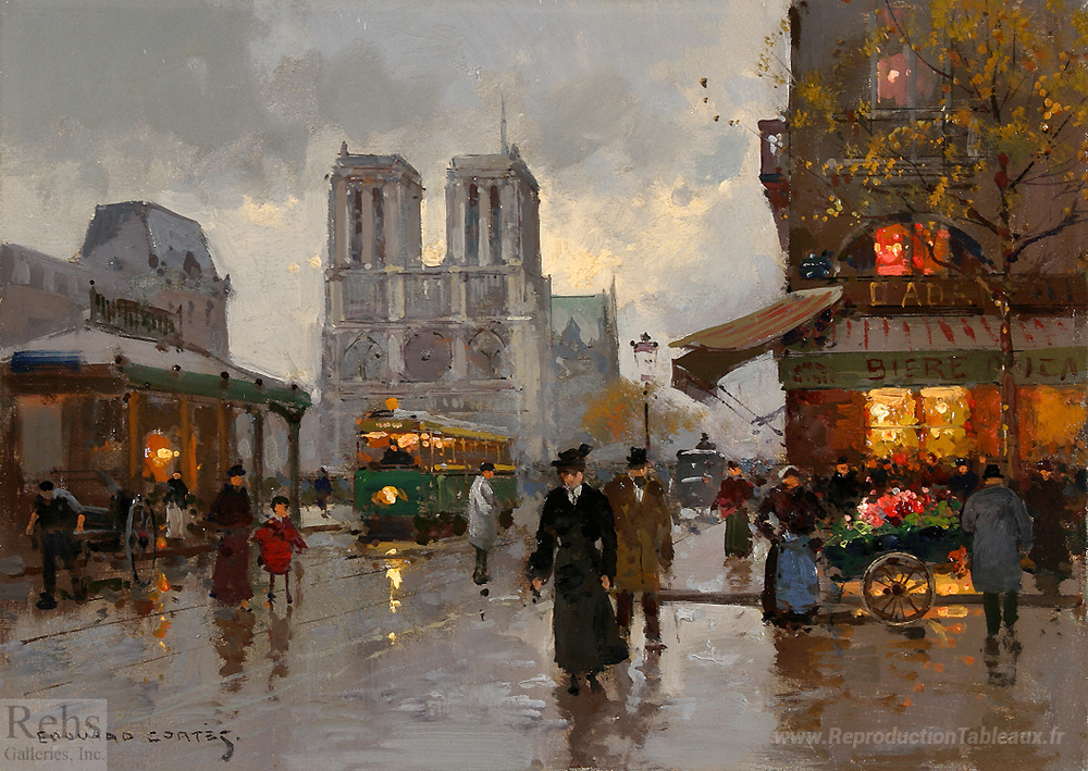 Nous vous proposons une reproduction artisanale sur toile du célèbre tableau 'Notre Dame' de Edouard Cortes, provenant du Musée de la Reproduction.
