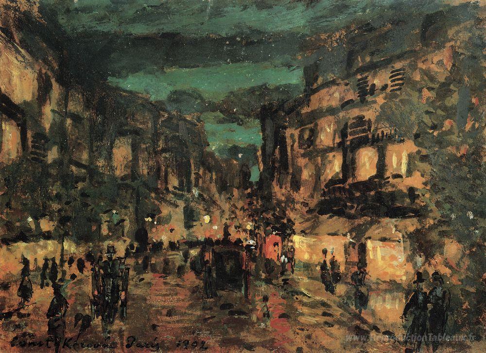 Nous vous proposons une reproduction artisanale sur toile du célèbre tableau 'Notte street.Paris' de Konstantin Korovin, provenant du Musée de la Reproduction.