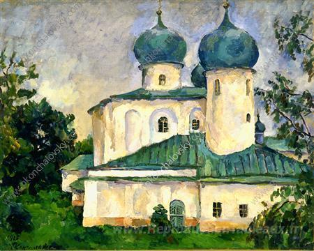 Nous vous proposons une reproduction artisanale sur toile du célèbre tableau 'Novgorod. Anthony le romain.' de Pyotr Konchalovsky, provenant du Musée de la Reproduction.
