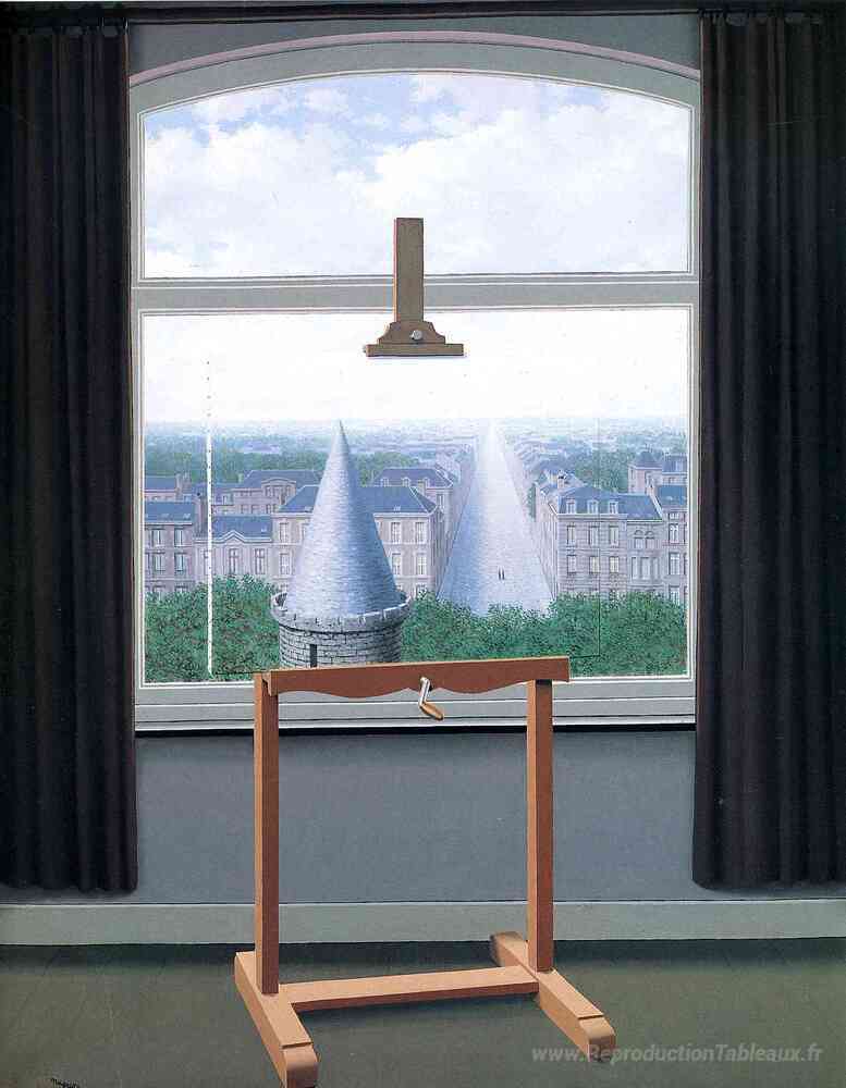 Nous vous proposons une reproduction artisanale sur toile du célèbre tableau 'Où l'euclide a marché' de Rene Magritte, provenant du Musée de la Reproduction.