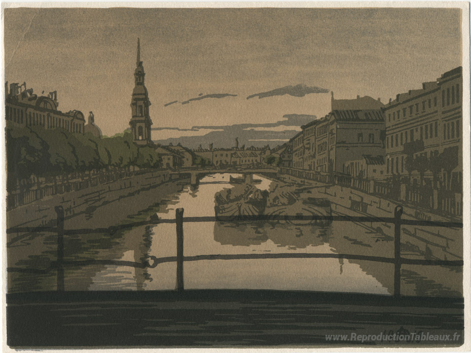 Nous vous proposons une reproduction artisanale sur toile du célèbre tableau 'Pétersbourg. Canal de Kryukov.' de Anna Ostroumova-Lebedeva, provenant du Musée de la Reproduction.