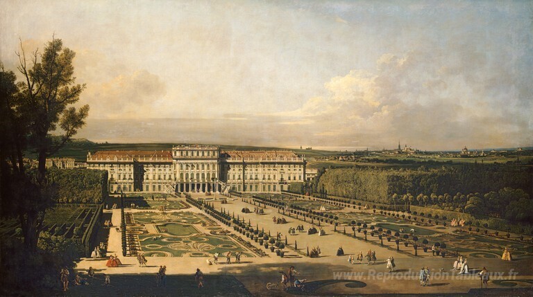 Nous vous proposons une reproduction artisanale sur toile du célèbre tableau 'Palais d'été impérial de Schönbrunn, façade de jardin' de Bernardo Bellotto, provenant du Musée de la Reproduction.