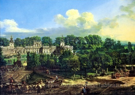 Nous vous proposons une reproduction artisanale sur toile du célèbre tableau 'Palais de Wilanów vu de l'entrée' de Bernardo Bellotto, provenant du Musée de la Reproduction.