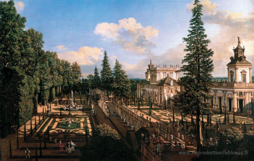 Nous vous proposons une reproduction artisanale sur toile du célèbre tableau 'Palais de Wilanów vu du nord-est' de Bernardo Bellotto, provenant du Musée de la Reproduction.