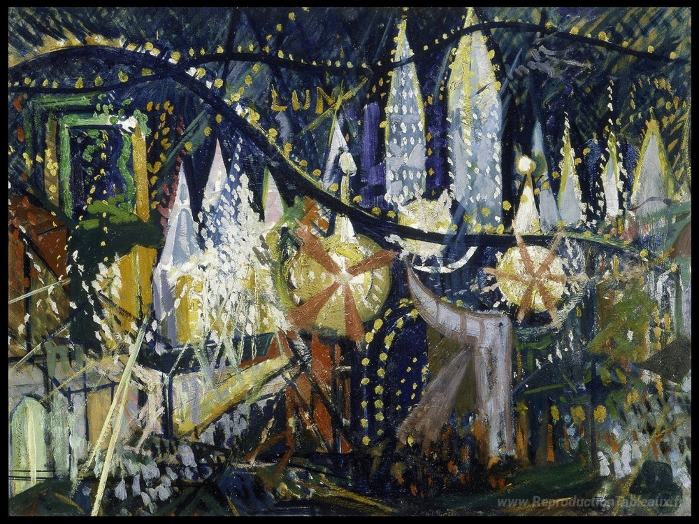 Nous vous proposons une reproduction artisanale sur toile du célèbre tableau 'Parc Luna' de Joseph Stella, provenant du Musée de la Reproduction.