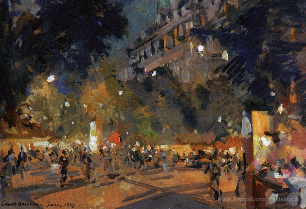 Nous vous proposons une reproduction artisanale sur toile du célèbre tableau 'Parigi' de Konstantin Korovin, provenant du Musée de la Reproduction.