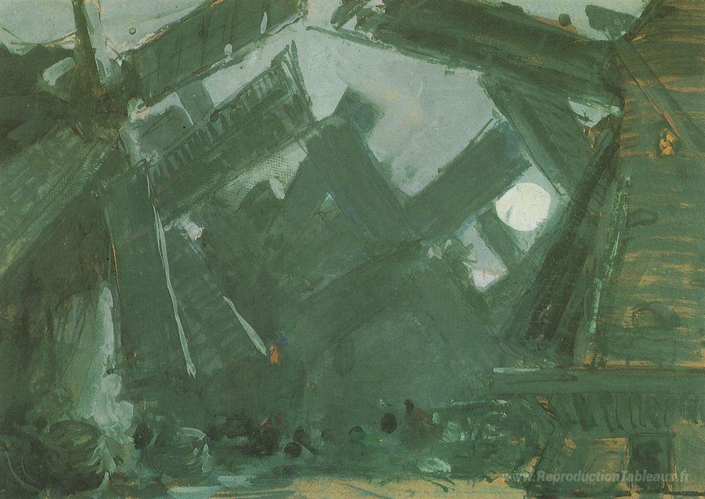 Nous vous proposons une reproduction artisanale sur toile du célèbre tableau 'Parmi les moulins' de Konstantin Korovin, provenant du Musée de la Reproduction.