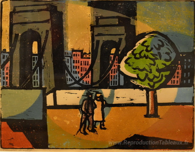 Nous vous proposons une reproduction artisanale sur toile du célèbre tableau 'Paysage avec pont' de Vasile Dobrian, provenant du Musée de la Reproduction.