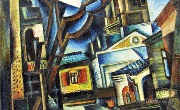 Nous vous proposons une reproduction artisanale sur toile du célèbre tableau 'Paysage urbain' de M. H. Maxy, provenant du Musée de la Reproduction.