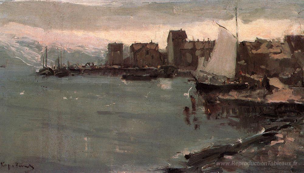 Nous vous proposons une reproduction artisanale sur toile du célèbre tableau 'Port en Norvège' de Konstantin Korovin, provenant du Musée de la Reproduction.