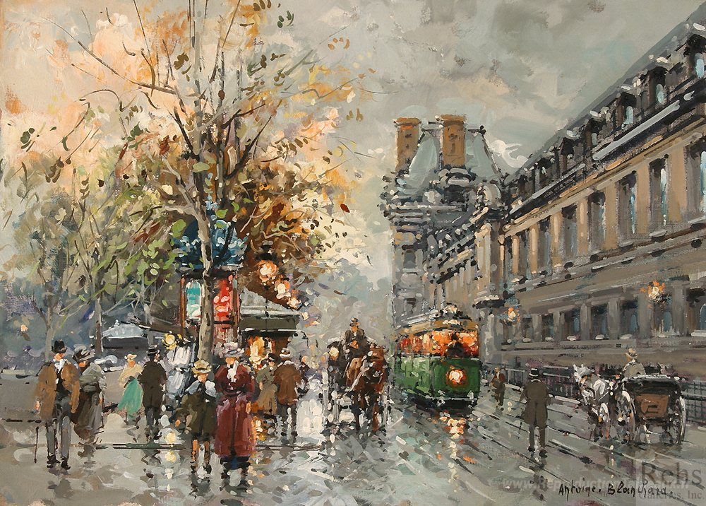Nous vous proposons une reproduction artisanale sur toile du célèbre tableau 'Porte Saint-Denis' de Antoine Blanchard, provenant du Musée de la Reproduction.