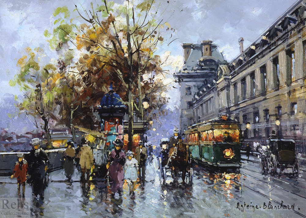 Nous vous proposons une reproduction artisanale sur toile du célèbre tableau 'Porte Saint-Denis' de Antoine Blanchard, provenant du Musée de la Reproduction.