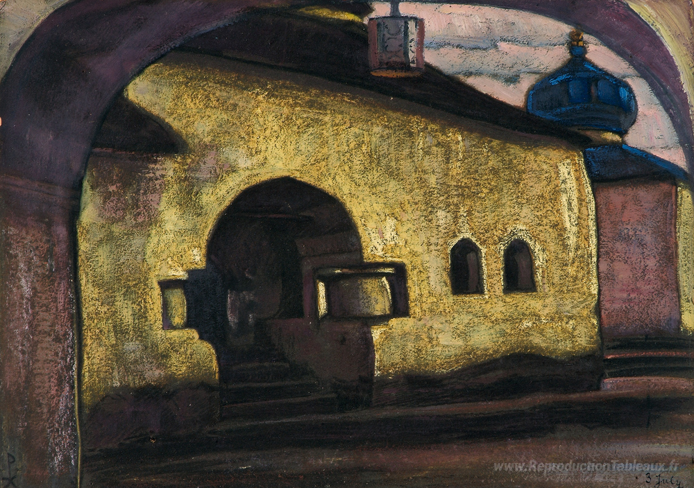 Nous vous proposons une reproduction artisanale sur toile du célèbre tableau 'Pskov' de Nicholas Roerich, provenant du Musée de la Reproduction.