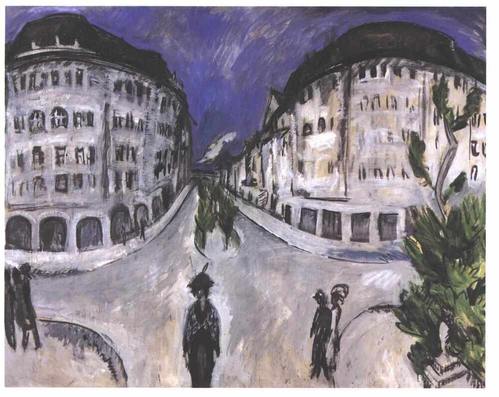 Nous vous proposons une reproduction artisanale sur toile du célèbre tableau 'Rue à Stadtpark' de Ernst Ludwig Kirchner, provenant du Musée de la Reproduction.