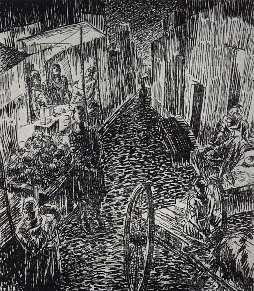 Nous vous proposons une reproduction artisanale sur toile du célèbre tableau 'Rue' de Kuzma Petrov-Vodkin, provenant du Musée de la Reproduction.