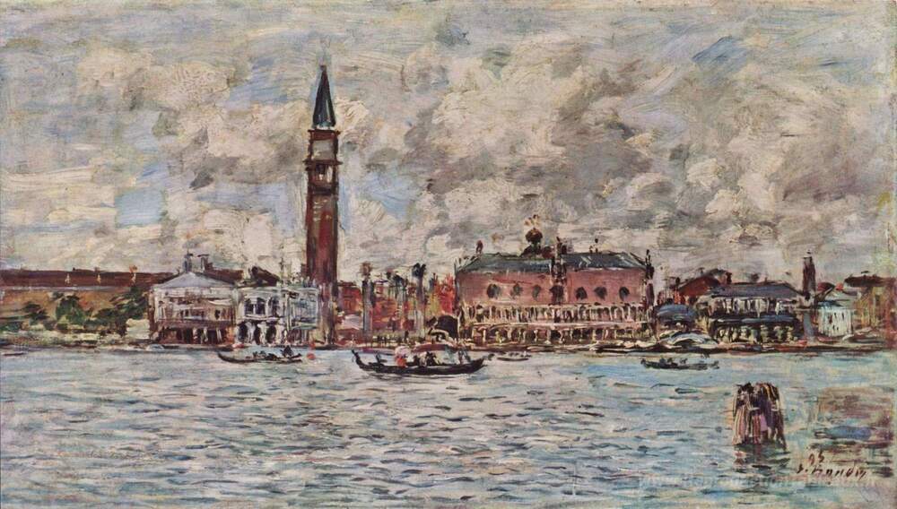Nous vous proposons une reproduction artisanale sur toile du célèbre tableau 'San-Marco Square à Venise' de Eugene Boudin, provenant du Musée de la Reproduction.