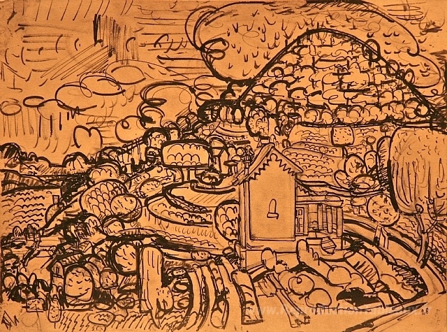 Nous vous proposons une reproduction artisanale sur toile du célèbre tableau 'Sans titre' de Hans Hofmann, provenant du Musée de la Reproduction.