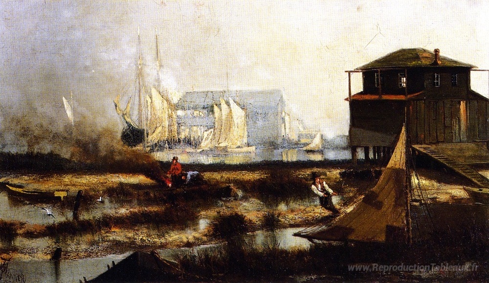 Nous vous proposons une reproduction artisanale sur toile du célèbre tableau 'Scène de port' de Henry Ossawa Tanner, provenant du Musée de la Reproduction.