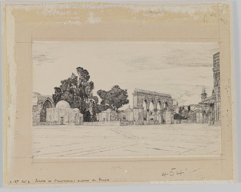 Nous vous proposons une reproduction artisanale sur toile du célèbre tableau 'Site supposé du temple' de James Tissot, provenant du Musée de la Reproduction.