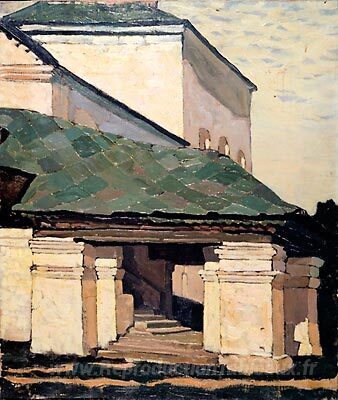 Nous vous proposons une reproduction artisanale sur toile du célèbre tableau 'Smolensk. Le porche du couvent.' de Nicholas Roerich, provenant du Musée de la Reproduction.