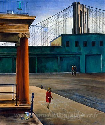 Nous vous proposons une reproduction artisanale sur toile du célèbre tableau 'South Street Toop' de O. Louis Guglielmi, provenant du Musée de la Reproduction.