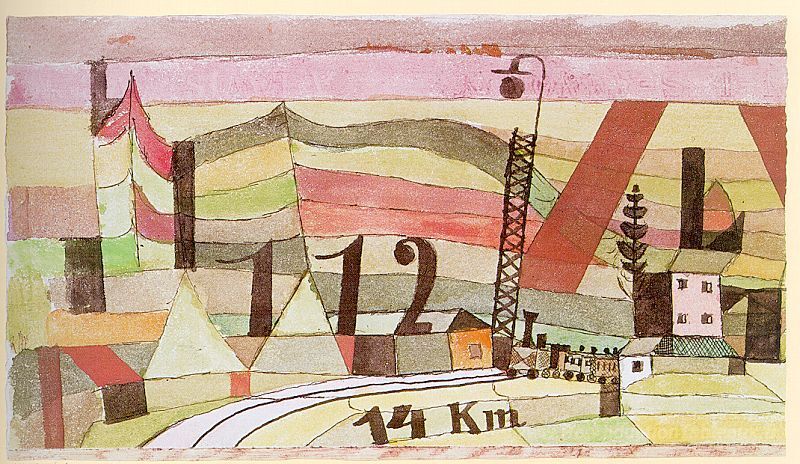 Nous vous proposons une reproduction artisanale sur toile du célèbre tableau 'Stazione L 112' de Paul Klee, provenant du Musée de la Reproduction.