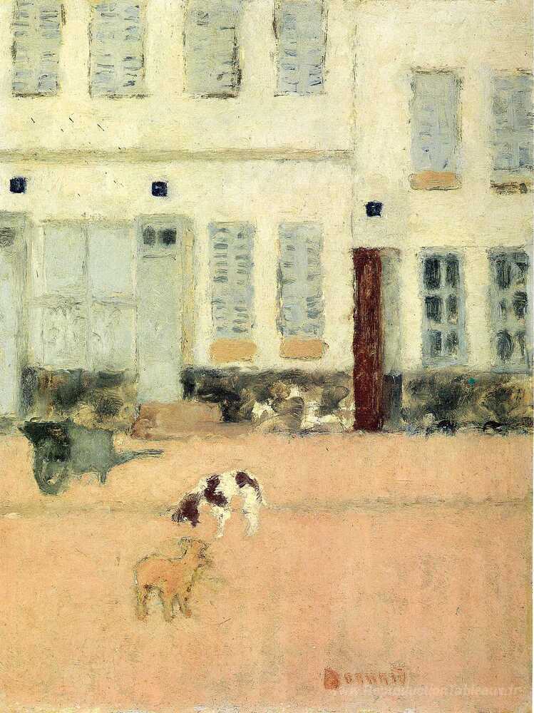 Nous vous proposons une reproduction artisanale sur toile du célèbre tableau 'Street à Eragny-sur-Oise ou chiens à Eragny' de Pierre Bonnard, provenant du Musée de la Reproduction.