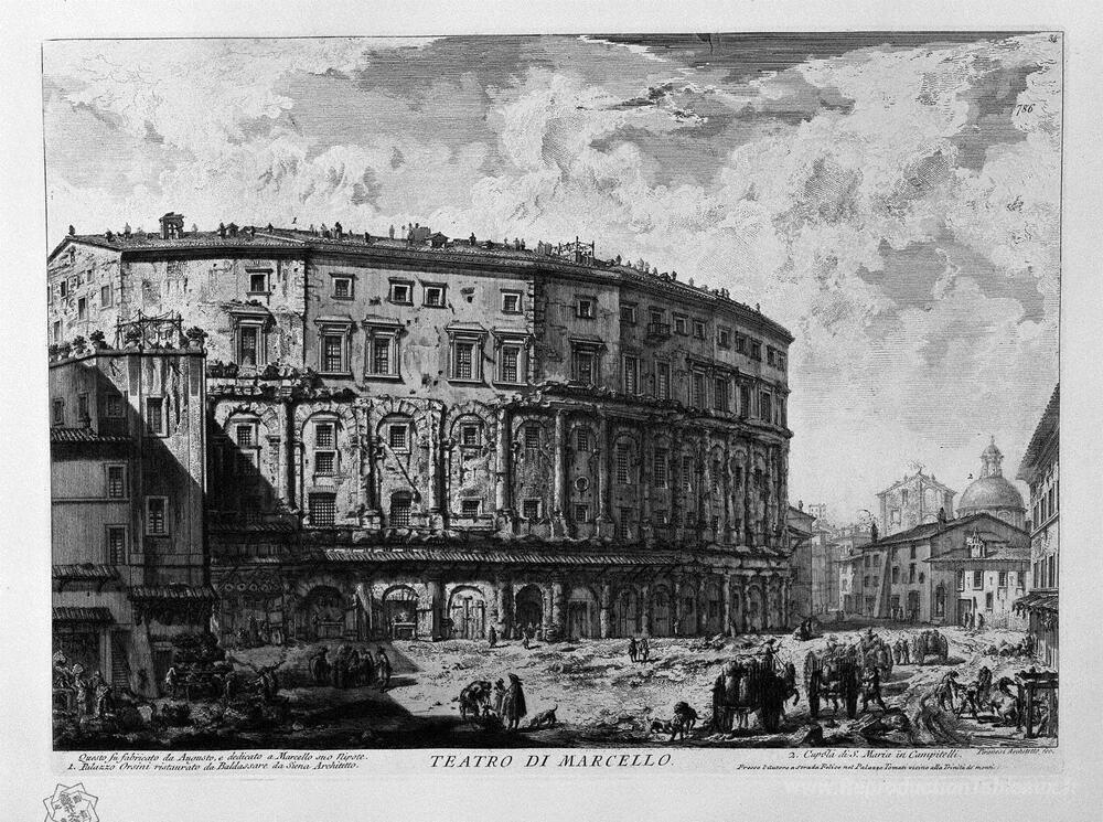 Nous vous proposons une reproduction artisanale sur toile du célèbre tableau 'Théâtre de Marcellus' de Giovanni Battista Piranesi, provenant du Musée de la Reproduction.