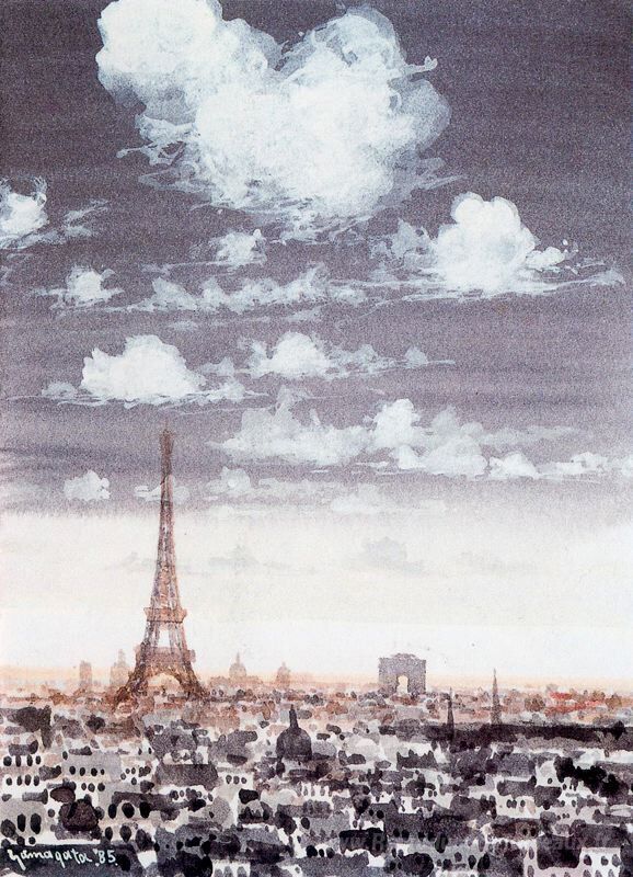 Nous vous proposons une reproduction artisanale sur toile du célèbre tableau 'Tour au crépuscule' de Hiro Yamagata, provenant du Musée de la Reproduction.