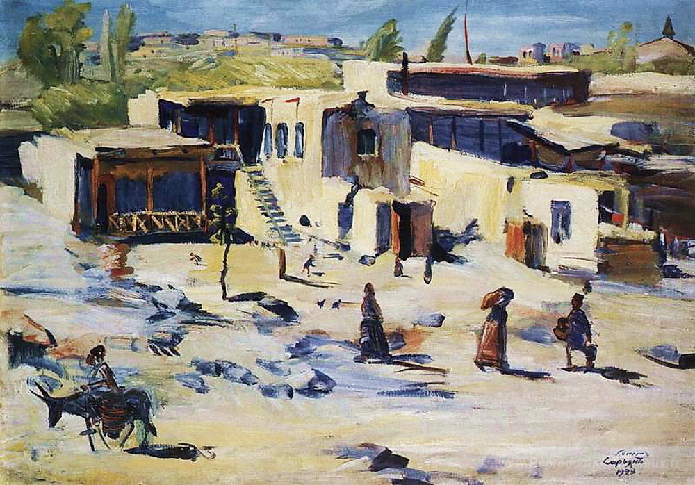 Nous vous proposons une reproduction artisanale sur toile du célèbre tableau 'Un coin de vieux Yerevan' de Martiros Saryan, provenant du Musée de la Reproduction.