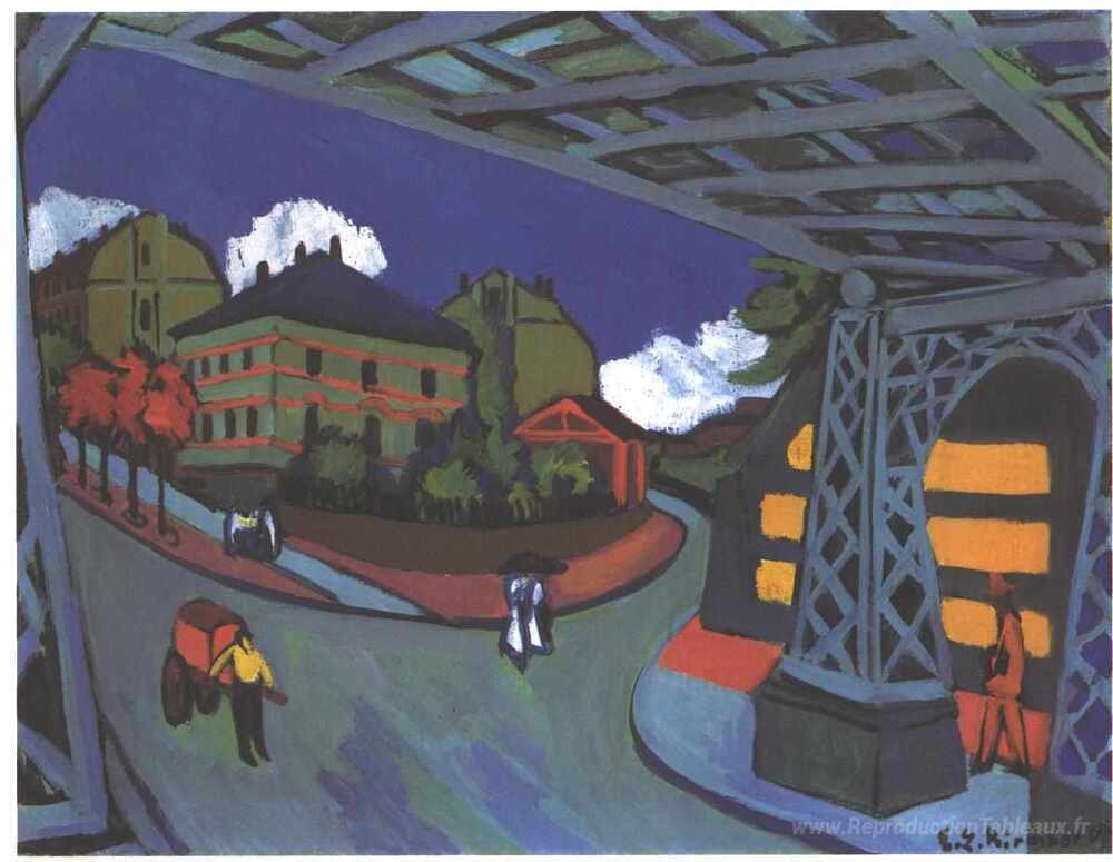 Nous vous proposons une reproduction artisanale sur toile du célèbre tableau 'Un passage du chemin de fer à Dresde' de Ernst Ludwig Kirchner, provenant du Musée de la Reproduction.