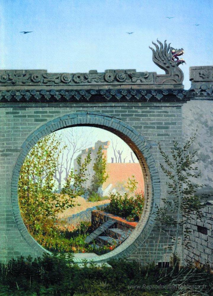 Nous vous proposons une reproduction artisanale sur toile du célèbre tableau 'Une porte de jardin à Chuguchak' de Vasily Vereshchagin, provenant du Musée de la Reproduction.