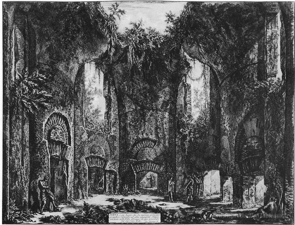 Nous vous proposons une reproduction artisanale sur toile du célèbre tableau 'Vedute di Roma' de Giovanni Battista Piranesi, provenant du Musée de la Reproduction.