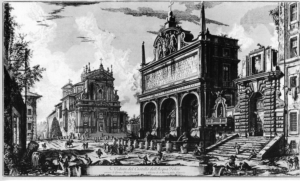 Nous vous proposons une reproduction artisanale sur toile du célèbre tableau 'Vedute di Roma' de Giovanni Battista Piranesi, provenant du Musée de la Reproduction.