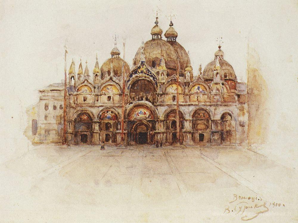 Nous vous proposons une reproduction artisanale sur toile du célèbre tableau 'Venise. Basilique de Saint Mark.' de Vasily Surikov, provenant du Musée de la Reproduction.