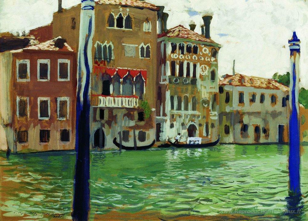 Nous vous proposons une reproduction artisanale sur toile du célèbre tableau 'Venise' de Boris Kustodiev, provenant du Musée de la Reproduction.
