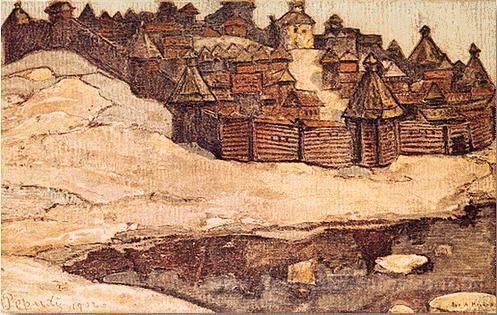Nous vous proposons une reproduction artisanale sur toile du célèbre tableau 'Vieille ville' de Nicholas Roerich, provenant du Musée de la Reproduction.