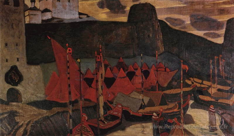 Nous vous proposons une reproduction artisanale sur toile du célèbre tableau 'Vieux pskov' de Nicholas Roerich, provenant du Musée de la Reproduction.
