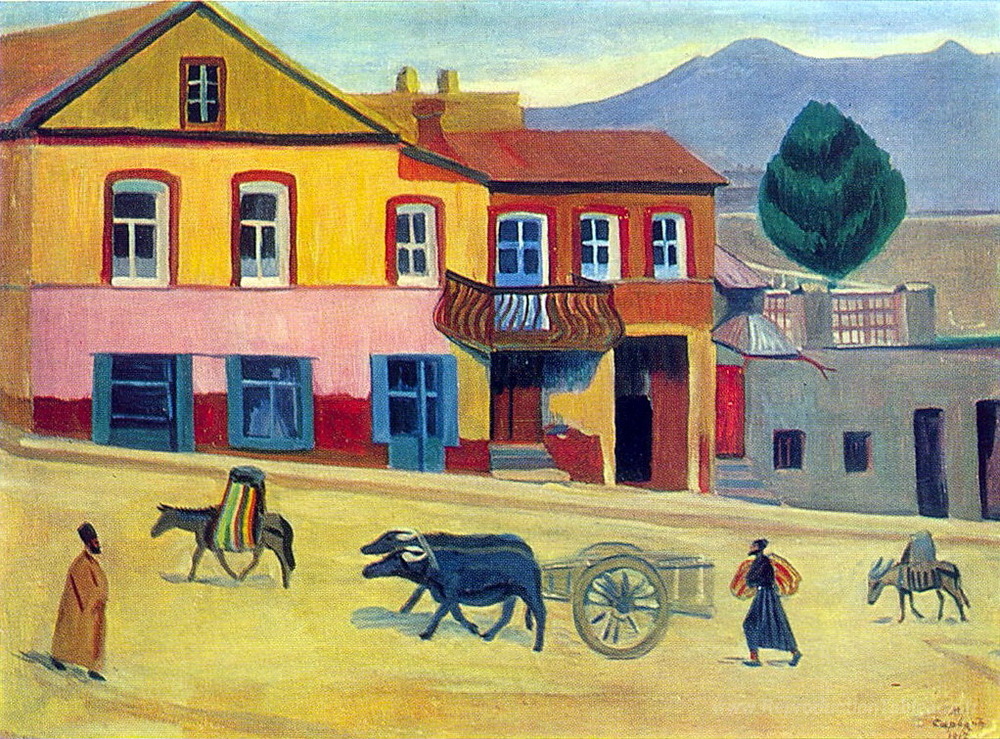 Nous vous proposons une reproduction artisanale sur toile du célèbre tableau 'Vieux tbilissi' de Martiros Saryan, provenant du Musée de la Reproduction.