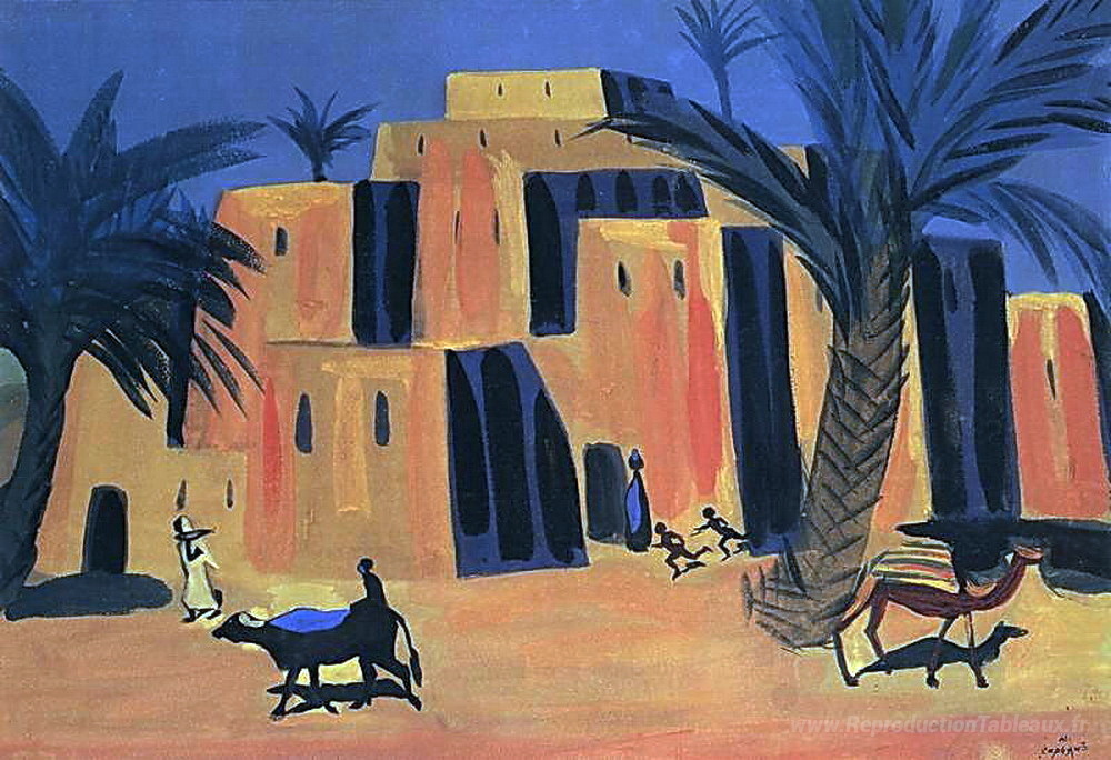 Nous vous proposons une reproduction artisanale sur toile du célèbre tableau 'Village' de Martiros Saryan, provenant du Musée de la Reproduction.