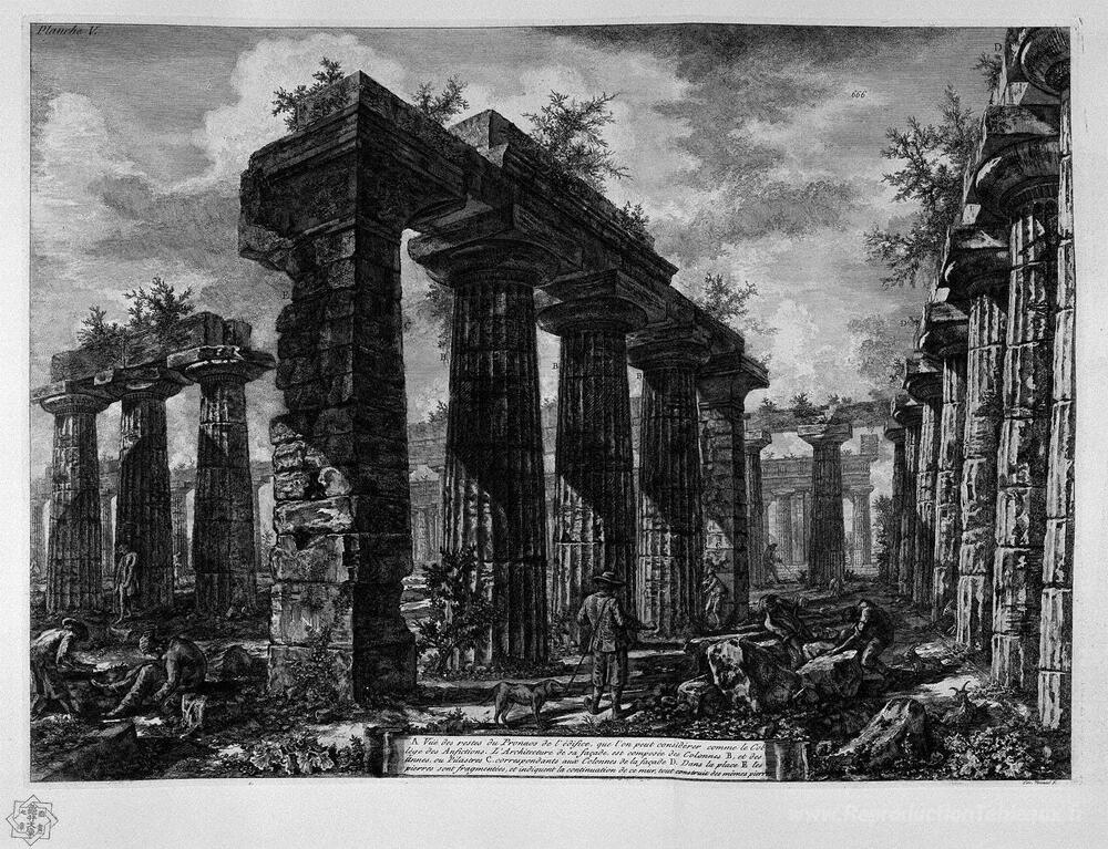 Nous vous proposons une reproduction artisanale sur toile du célèbre tableau 'Voir les restes des prononos' de Giovanni Battista Piranesi, provenant du Musée de la Reproduction.